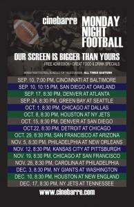 The Mt. Pleasant movie theater will once again be offering FREE viewings of all Monday Night Football games on one of their big screens. The schedule of games can be found on the left.