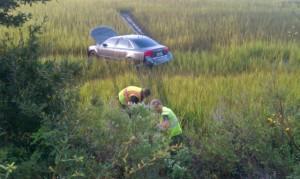 1. A man crashed his car into the marsh off Harbor View Drive on Friday morning. The picture on the left is from the Live 5 News story, which you can read HERE. You can also view a slide show of the accident HERE.