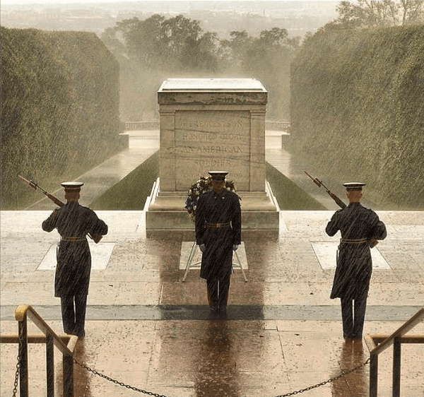 - Check out the photo of the soldiers guarding the Tomb of the Unknown Soldier in Arlington (photo on the right). A quick story about them is HERE. They originally posted the photo on their Facebook page, but, apparently, the photo was taken in September.