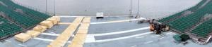 The seats and lights are being installed for the upcoming Carrier Classic this Friday (11/9). This will be the second year of the college basketball event, which is played on the deck of a Navy aircraft carrier. The first Carrier Classic was held last year in San Diego on the USS Carl Vinson.