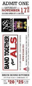 The Brick House Kitchen on Folly Road will host a day long, concert fundraiser for ALS next Saturday (11/17). The event, Band Together for ALS, will start at 11 am and feature a plethora of local bands as well as a few out-of-towners.