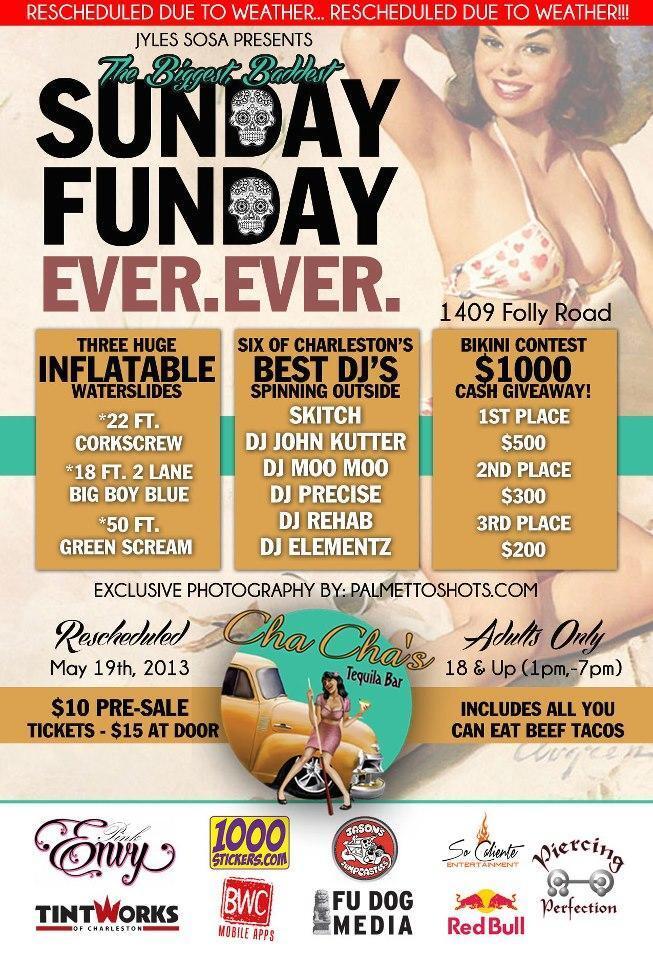 sundayfundayCha Cha’s Tequila Bar is hosting “The Biggest Baddest Sunday Funday Ever. Ever.” on May 19th at 1 pm.