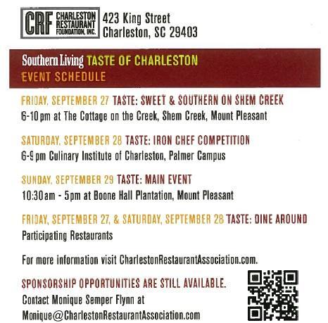 The Southern Living Taste of Charleston will be held from September 27th until the 29th and will include the following events: