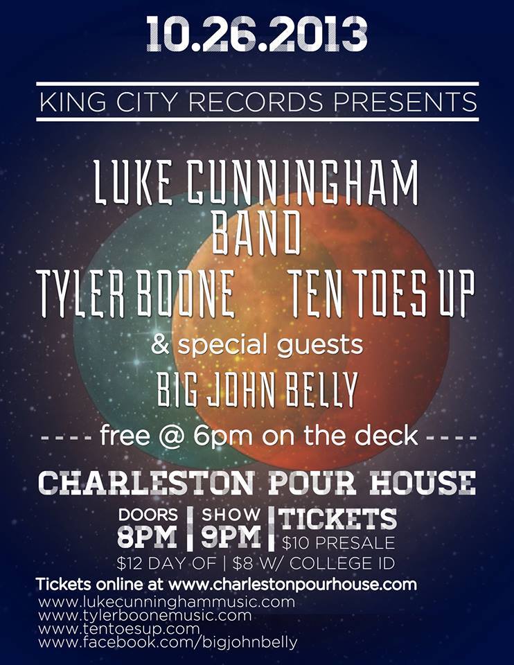 Music King City Records Showcase at the Pour House Published 12 years ago on September 4, 2013 By Holy City Sinner Check out this King City Records showcase at the Charleston Pour House on October 26th: Share on FacebookTweetFollow us Related Topics:big john bellyluke cunninghamTen Toes Upthe pour housetyler boone Up Next Room for Squares: Coliseum Welcomes John Mayer This December Don't Miss Triple Album Release Show at the Music Hall Click to comment Leave a Reply Cancel replyYour email address will not be published. Required fields are marked *Comment * Name Email Website Follow Us Subscribe to HCS Subscribe to our mailing list Search PatreonAds HCS Sponsors Ads Events Weekend Preview2 years ago Charleston Weekend Events There’s ALWAYS something to do in Charleston – especially on the weekend. If you need help finding plans, just consult... Events2 years ago Explore Charleston & Children’s Museum of the Lowcountry Unveil The Charleston Santa Events2 years ago Waterfront Ice Skating Rink to Return to Charleston Harbor Resort & Marina Events2 years ago Miracle Holiday Pop-Up Bar Returns to Handcraft Kitchen & Cocktails This Month Events2 years ago Big Brothers Big Sisters hosts BIG Lowcountry Boil Events2 years ago Comedy Legend Katt Williams Returns to the North Charleston Coliseum in March Events2 years ago Parade, Vendor Applications Open for Upcoming ‘Holiday Magic’ Events Events2 years ago “Know Whatcha’ Know” Release Party & Fashion Show Set for Saturday Events2 years ago High Tide Music & Arts Festival Coming Back to Charleston for Third Year More Events