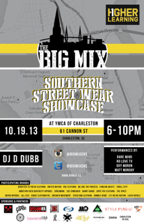 The main event will be held on Saturday, October 19th from 6 pm – 10 pm at the Greater Charleston YMCA (61 Cannon Street). Independent brands from South Carolina, North Carolina, and Georgia will sell and showcase their streetwear and products. Plus, DJ D Dubb, Matt Monday, OxyMoron, Rare Minds and NoLoveTV will be performing throughout the event. The event is free and open to the public. The first 50 attendees will receive gift bags provided by “BIG MIX” partners/sponsors.