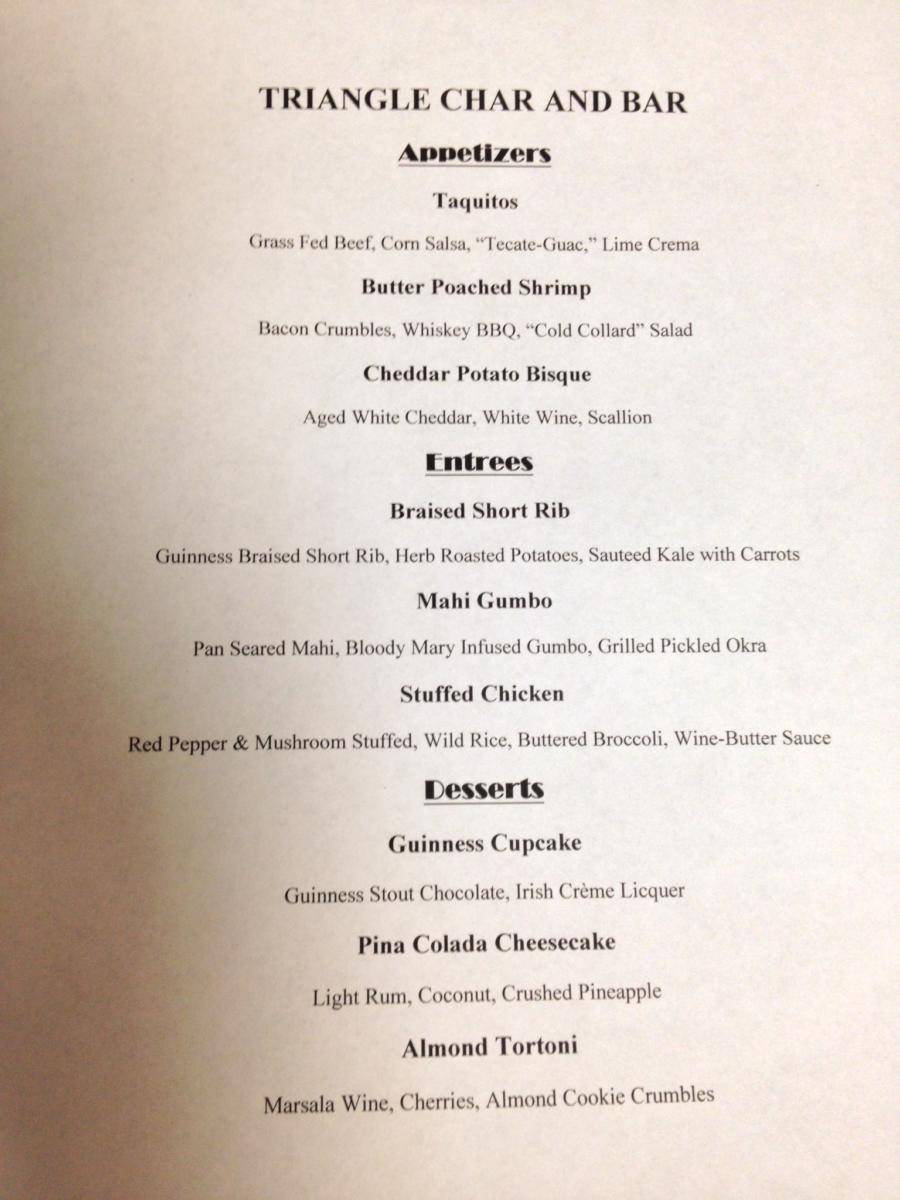 Unfortunately, only one business has posted their menu so far. Al Di La and Mellow Mushroom’s menus will be similar (if not the same) to what they had for CHS Restaurant Week. Check back for updates!