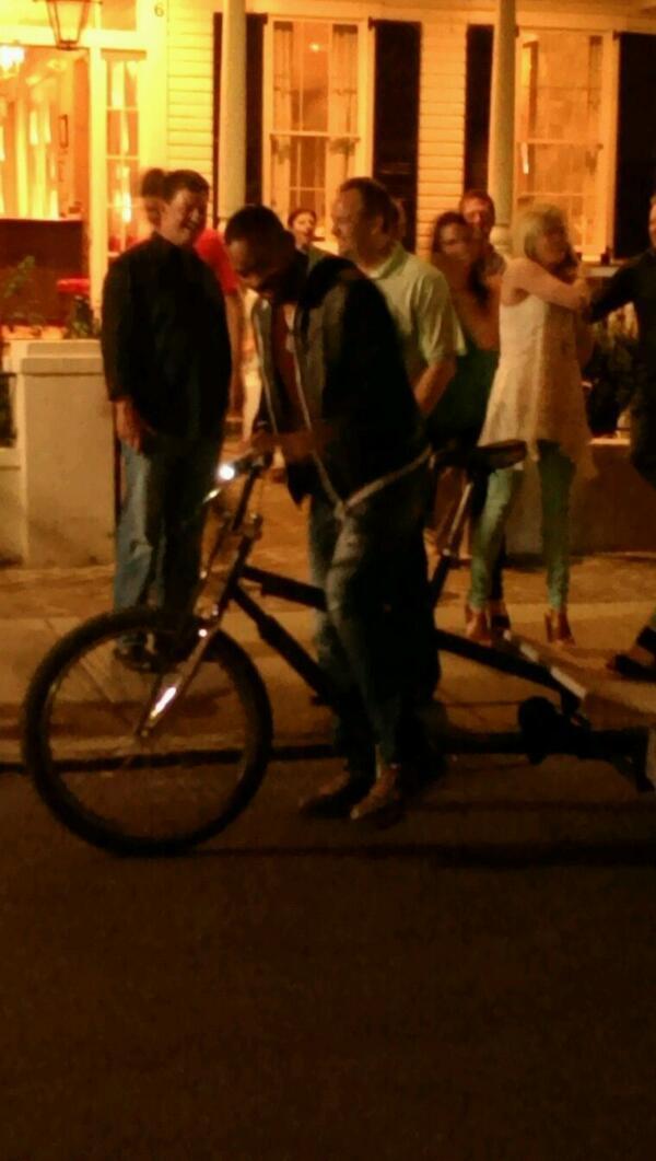 Holy City Sinner was in the Bar at Husk while Smith was in the restaurant, but spotted him on his way out. When Smith reached Queen Street, much to the delight of the small crowd gathered outside the restaurant, he hopped on the front of rickshaw and drove a woman down the street a few feet before turning back towards Husk. Smith posed for a few pictures before heading towards King Street.