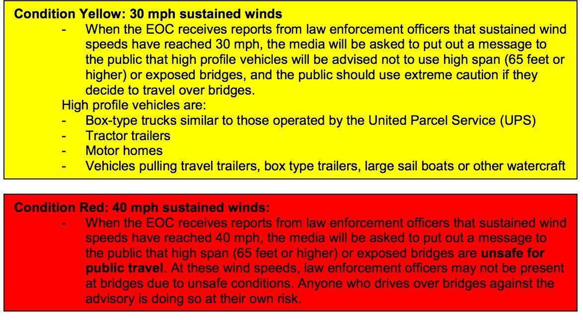 The Mount Pleasant Police tweeted a helpful graphic that provides bridge procedures during high wind events. Take a look: