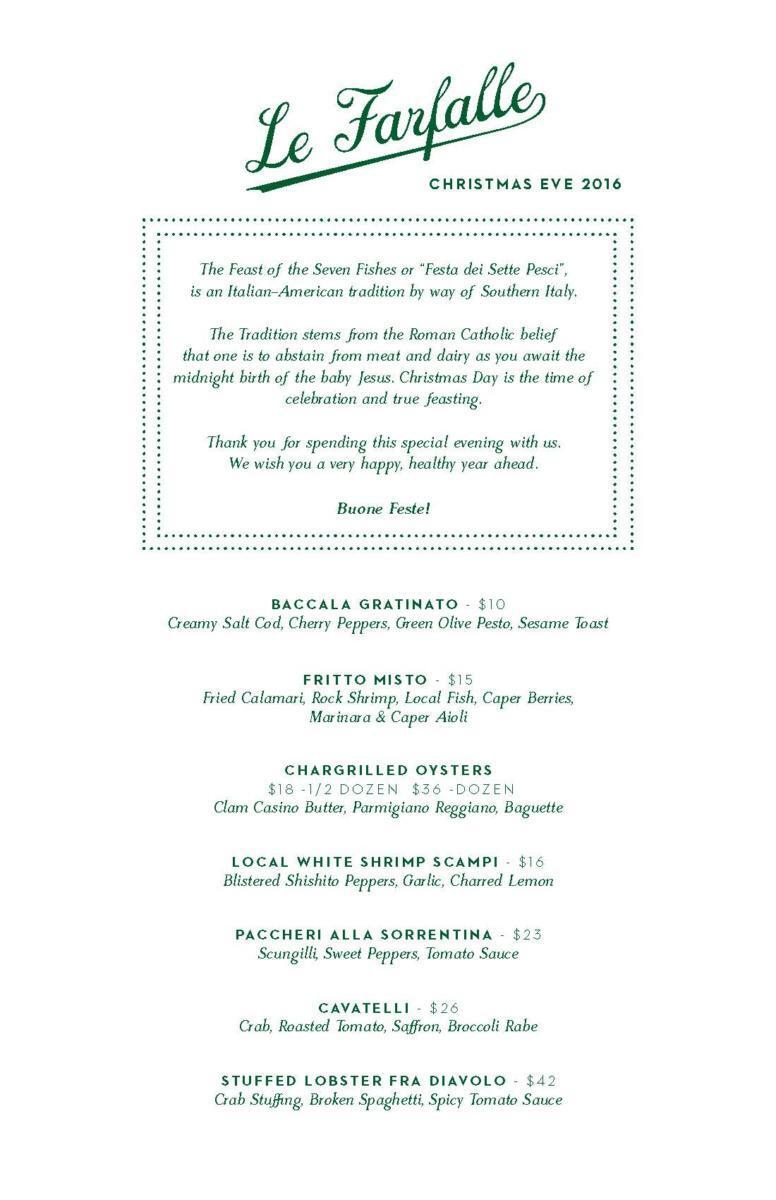 Le Farfalle Hosts The Feast of Seven Fishes on Christmas Eve