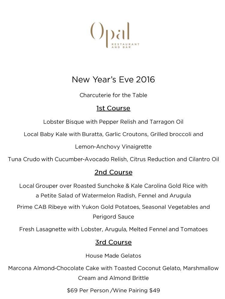 Meanwhile, Opal will have a three-course dinner plus charcuterie for $69 per person at Opal. Add wine pairings for $49. You can see that menu here: