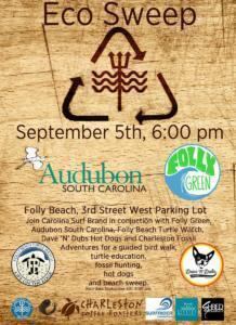 Participating groups include Folly Green, Audubon South Carolina, Folly Beach Turtle Watch, Charleston Waterkeeper, Surfrider Foundation’s Charleston Chapter, Lowcountry Marine Mammal Network, Charleston Fossil Adventures, and the College of Charleston Geology Club.