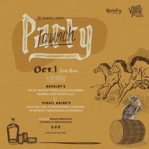 Be one of the first people to sample new whiskey and beer releases during The Barrel Swap Party at Revelry Brewing on Sunday, October 1st, starting at 2 pm.