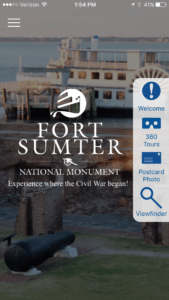 The app also uses augmented reality technology in a “view finder” feature that visitors access as they ride to and from Fort Sumter on the tour boat. Simply point your smartphone at one of eight points of interest in the Charleston Harbor, such as Fort Moultrie or the Charleston Battery, and visitors will receive a pop-up notice with additional information on the selected landmark.