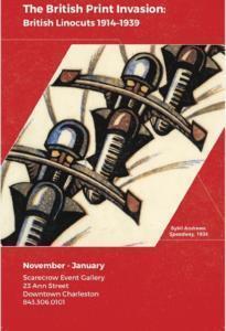 Scarecrow Event Gallery located at 23 Ann Street in downtown Charleston is proud to present the British Print Invasion Exhibit, a contemporary art collection featuring 20th century British linocuts. The previously private exhibit will be on display to the public for the first time in Charleston from November 2017 through January 2018.
