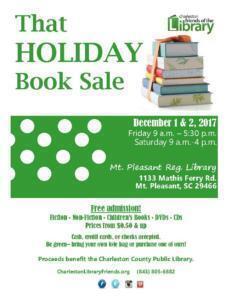 Looking for some extra (and inexpensive) stocking stuffers this Christmas? Then a good place to shop may be THAT Holiday Book Sale hosted by the Charleston Friends of the Library. The event will take place on Friday, December 1st and Saturday, December 2nd at the Mt. Pleasant Regional Library.