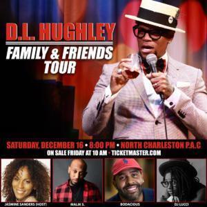 On Saturday, December 16th, comedian D.L. Hughley will bring his Family & Friends Tour to the North Charleston Performing Arts Center. The show includes Jasmine Sanders, Malik Bodacious, and DJ Lucci.