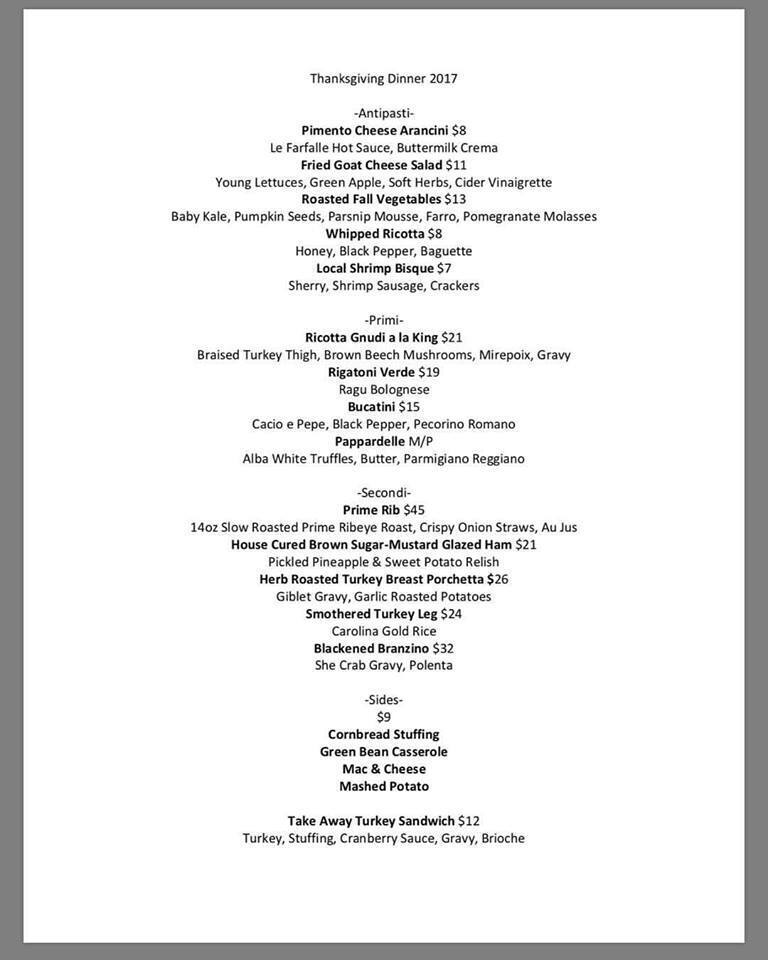 Charleston Restaurants Open on Thanksgiving 2017
