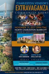 The 6th Annual Charleston Vendor’s Extravaganza will take place Sunday, November 19th at the North Charleston Marriott from 3 pm until 7 pm. The event brings together local and regional businesses and entrepreneurs and the community to shop, network, and be entertained.