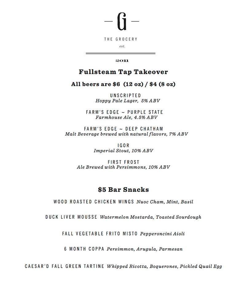 Starting at 5 pm on Thursday, The Grocery will host a Fullsteam Tap Takeover featuring five beers that are not currently available in South Carolina.