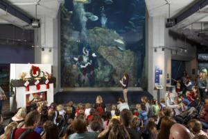 Dive shows are led by an Aquarium educator and occur daily in front of the Great Ocean Tank at 11 am and 3 pm. Throughout the holidays, Scuba Claus will anchor weekend dive shows while elves are scheduled to appear on weekdays. Visit scaquarium.org/holidays to view a detailed schedule.