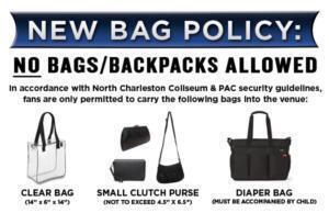 In the interest of enhancing existing security measures, North Charleston Coliseum and Performing Arts Center officials announced today that they will implement a new clear bag security policy regulating the size and types of bags that may be carried into the venues in 2018.