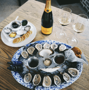 - $99 for a bottle of Veuve + a dozen oysters