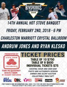 For tickets to the Hot Stove Banquet and additional information, please contact the RiverDogs Special Events Department at (843) 577-DOGS (3647) or visit www.RileyParkEvents.com. One-of-a-kind meet and greet opportunities with Jones before the event are available now for auction online at riverdogs.com/auctions.
