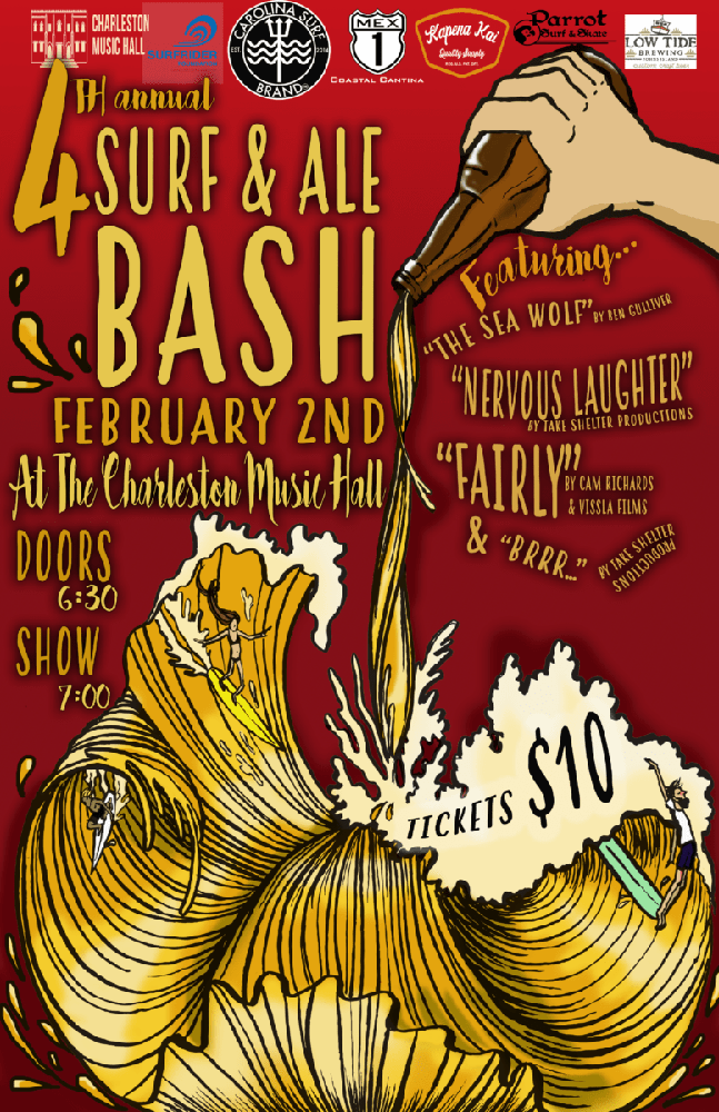 Carolina Surf Brand and the Charleston Music Hall will host the Carolina Surf Film Festival’s first event of 2018, the 4th Annual Surf & Ale Bash on Friday, February 2nd at 7 pm.