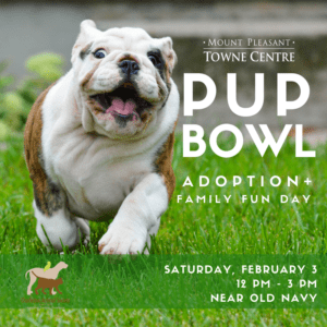 Join the Charleston Animal Society and Mount Pleasant Towne Centre as they team up to host the Pup Bowl on Saturday, February 3rd from noon to 3 pm near the Old Navy store.