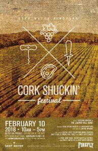 Deep Water Vineyards will host the 6th Annual Cork Shuckin’ Festival on Saturday, February 10th from 10 am until 5 pm.