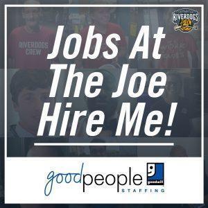 The Charleston RiverDogs, in partnership with Palmetto Goodwill’s new line of business, GoodPeople Staffing, will host two “Jobs at The Joe Hire Me!” events to fill ballpark gameday positions for the 2018 season: a food & beverage only job event on Saturday, February 10 and a general job fair for all positions on Saturday, March 3, both at Joseph P. Riley, Jr. Park.