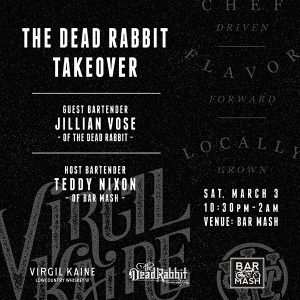 On Saturday, March 3rd, from 10:30 pm to 2 am, Charlestonians can experience a piece New York cocktail institution Dead Rabbit right here in the Holy City. Teddy Nixon and the team at Bar Mash will welcome Dead Rabbit’s beverage director Jillian Vose behind the bar to pour craft cocktails and shots made with sponsoring local spirit brand Virgil Kaine Lowcountry Whiskey Co.