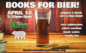 Who says there is no such thing as a free beer? Swing by Bay Street Biergarten on Tuesday, April 10th, from 5:30 pm to 8 pm, for the Charleston Friends of the Library’s 3rd annual Books for Bier event. This event is in celebration of National Library Week.