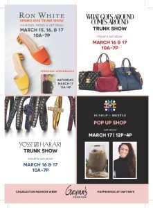 Charleston Fashion Week kicks off tonight and event sponsor Gwynn’s of Mount Pleasant is celebrating by hosting a series of trunk shows and pop up shops throughout the week.