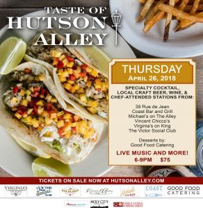 Holy City Hospitality, one of Charleston’s hospitality groups, has announced that the next installment of the Taste of Hutson Alley will be held on Thursday, April 26th from 6 pm until 9 pm.