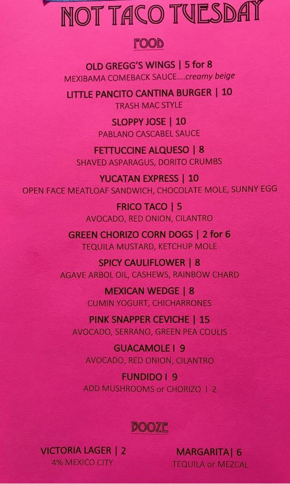 You’ve heard of Taco Tuesday, but downtown Mexican eatery Pancito & Lefty is doing the exact opposite with their “NOT Taco Tuesday” series.