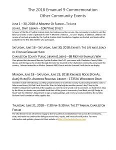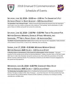 2018 Emanuel 9 Commemoration Schedule of Events