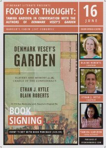 The event will feature award-winning historians and former Charleston residents Blaine Roberts and Ethan J. Kytle discussing their acclaimed history, Denmark Vesey’s Garden: Slavery and Memory in the Cradle of the Confederacy, published in April. Local activist and host of the “Mic’d Up” podcast Tamika Gadsden will interview the authors and moderate a question-and-answer segment. Both authors will be available to sign copies of the book following the interview.