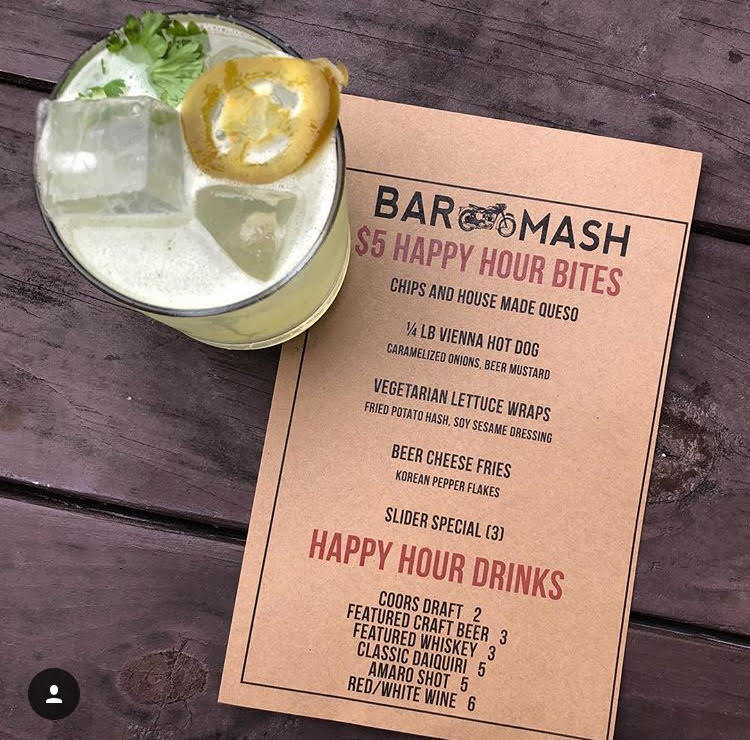 Bar Mash today announced a new $5 Happy Hour menu. The special menu is available from 4 pm to 6 pm every Monday through Friday.