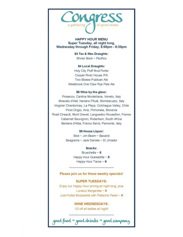Congress in Mt. Pleasant invites you to enjoy their new Super Tuesdays specials.