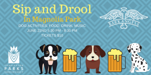 The Charleston Parks Conservancy is inviting park-loving pets and their people out to “Sip and Drool” in Magnolia Park from 5:30 pm to 8:30 pm on Friday, June 22nd.