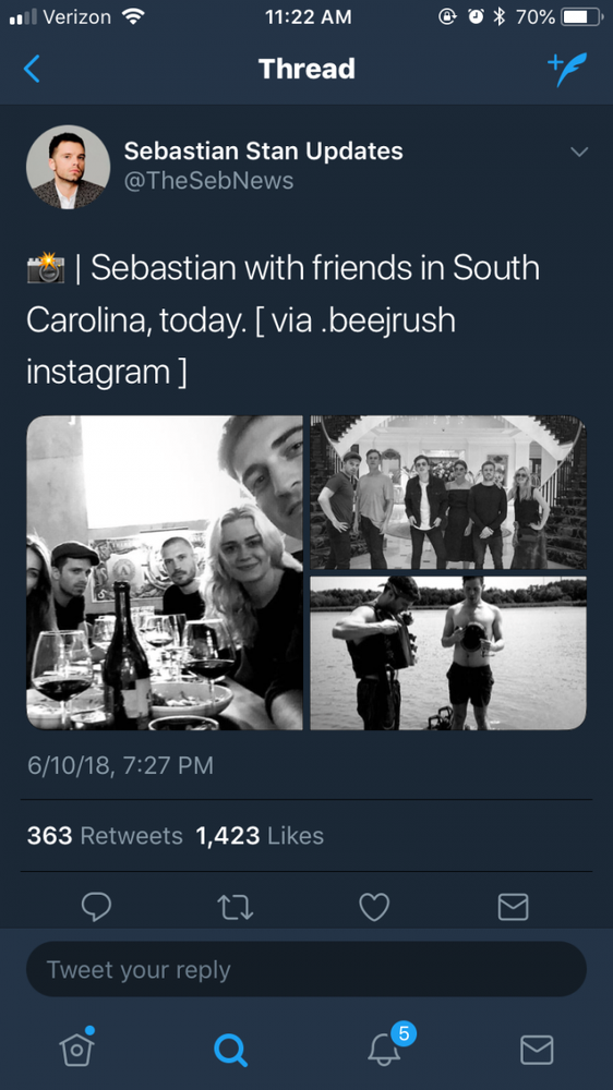 Representatives from 5Church confirmed that Stan dined at the downtown restaurant this past Sunday after photos of the star appeared on social media. Another photo shows Stan in the lobby of the Belmond Charleston Place hotel.