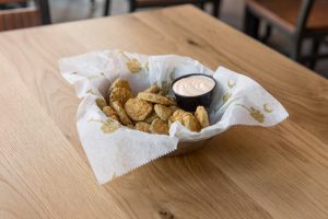 The bar’s $4 happy hour dishes include: Pretzels & Cheese, Fried Pickles, Loaded Shoestring Fries, Smoked Pimento Cheese Plate, Mac & Cheese Bites, Buffalo Shrimp, Mini Corn Dogs, and Borracho Chili.