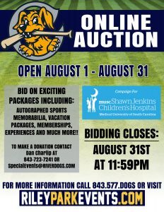 For additional information about the online auction, please contact Lisa Dingman at (843)577-DOGS (3647) or visit www.riverdogs.com or www.rileyparkevents.com.