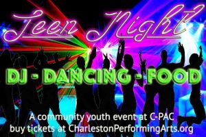 Addressing the need for a safe place for Charleston teens to socialize, the Charleston Performing Arts Center and local activist and author Gina Mocha are thrilled to offer the event from 6:30 pm to 9:30 pm. The event is for teens age 12-17 only.