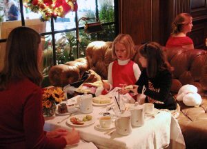 Kids will enjoy peanut butter and jelly teddy bear-shaped sandwiches, scones, and holiday cookies, and can choose from hot chocolate; apple cider; whole, skim or chocolate milk; or apple juice. Adults will receive traditional tea service, and are welcome to order alcoholic beverages at an additional cost.