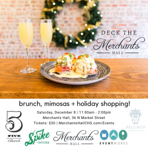 To celebrate the holiday season, Charleston’s new downtown event venue, Merchants Hall, will host “Deck the Merchants Hall,” its inaugural Christmas brunch and market. The event will be held from 11 am to 2 pm on Saturday, December 8th.