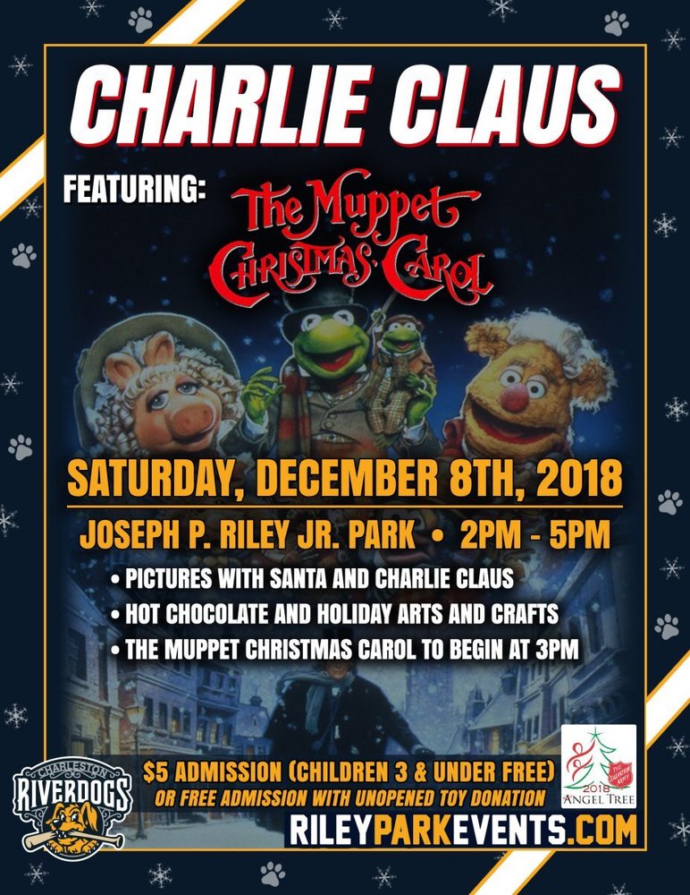 With the holiday season underway, Charlie and the RiverDogs family are asking fans to help give back. The Charleston club will host their annual Charlie Claus Movie Night, featuring a special presentation of The Muppet Christmas Carol, on Saturday, December 8th from 2 pm to 5 pm, while accepting donations to help benefit the Salvation Army Angel Tree Charleston.