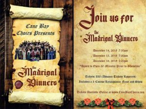 The Cane Bay Cobra Choirs will present their Annual Madrigal Dinners on Friday, December 14th and Saturday, December 15th at 7 pm and December 16th at 5 pm.