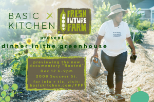 On Wednesday, December 12th, Basic Kitchen, in collaboration with Fresh Future Farm, will host a screening of the preview for the upcoming feature-length documentary Rooted, which follows the journey of Germaine Jenkins, founder of Fresh Future Farm. The event will be held at 2008 Success Street from 6 pm to 9 pm.